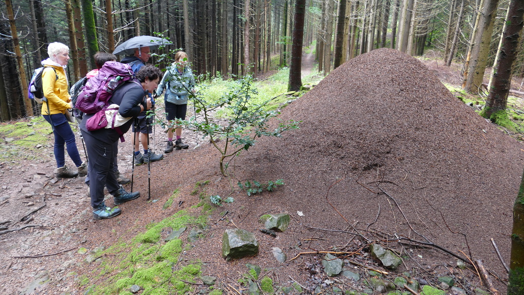 Es ging aufwärts bis zur Oberentersbacher Hütte. Dort machten wir erst mal Pause und konnten ein kühles Radler genießen, das dort im Brunnen angeboten wurde. Danach wanderten wir auf schmalen Pfaden durch einen schönen Wald, indem es unter anderem auch riesige Ameisenhaufen zu bewundern gab.