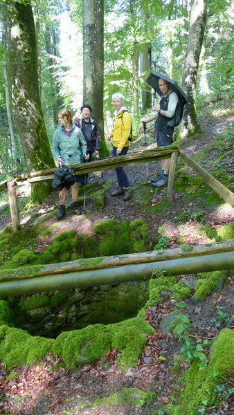 Kurz vor unserem Ausgangspunkt konnten wir noch eine gut erhaltene Wolfsgrube bewundern. Offensichtlich gab es schon früher Probleme mit Wölfen so dass man Gruben baute und sie mit Reisig abdeckte.