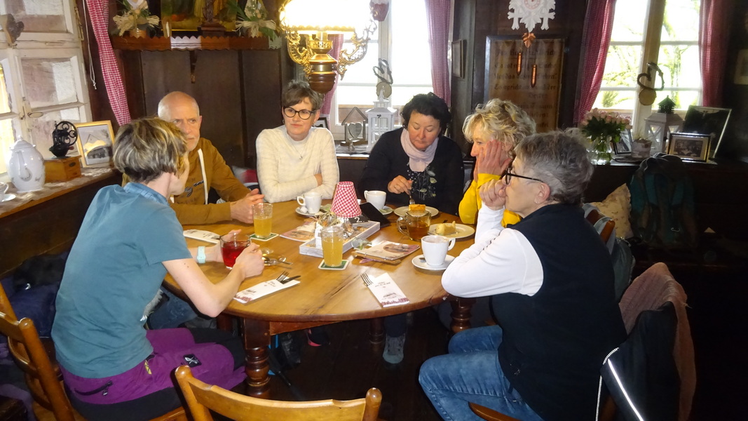 Anschließend ging es zum Aussichtspunkt Höllhaken und Sodlach bis zum Haldeneck. Von dort ging es abwärts zum Mühlstein, wo wir uns beim Vogt zum Mühlstein aufwärmen konnten.