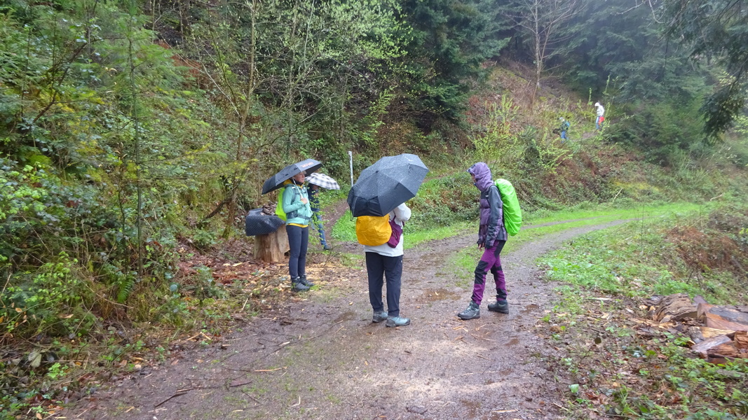 Nach der Pause ging es bei etwas stärkerem Regen zurück Richtung Unterharmersbach, wobei wir auf einen Besuch in der Kuhhornkopfhütte verzichteten.