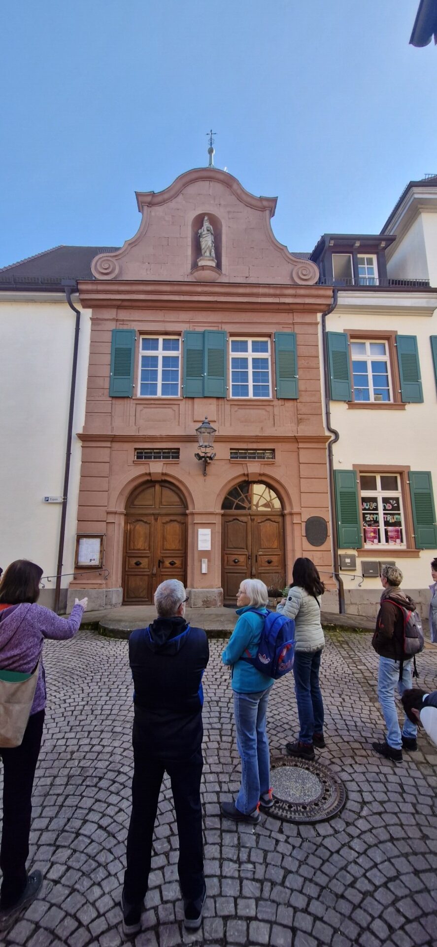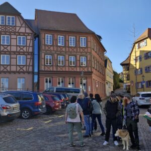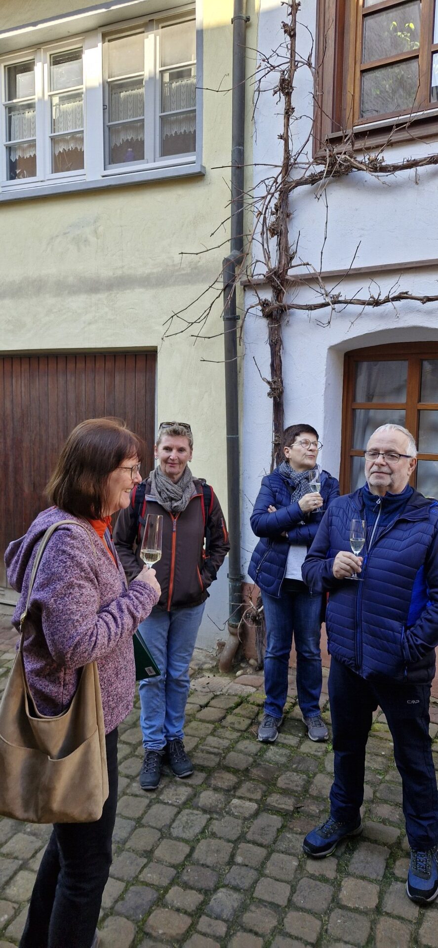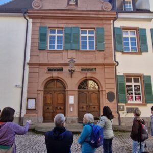 Wir haben uns um 9:45 Uhr in Ettenheim auf dem Parkplatz „Auf den Espen“ getroffen. Von dort sind wird zum Palais Rohan gelaufen. Dabei haben wir schon die ersten Informationen zu Ettenheim erhalten. Um kurz nach 10:00 Uhr haben wir weitere Personen am Palais Rohan getroffen. Mit 21 Personen sind wir dann durch Ettenheim gewandert und unser Führer, Karin Jess, hat uns vieles Interessantes über die Stadt erzählt. Ein Freund, Marcel, wohnt in der Innenstadt. In seinem Schopf gab es Sekt, Bier und Schorle.