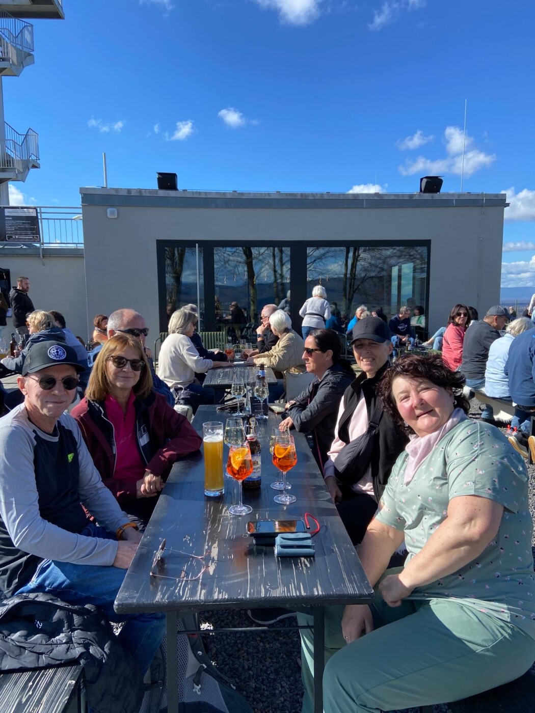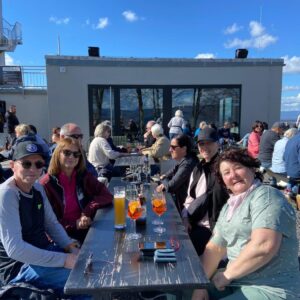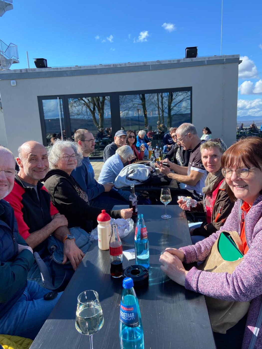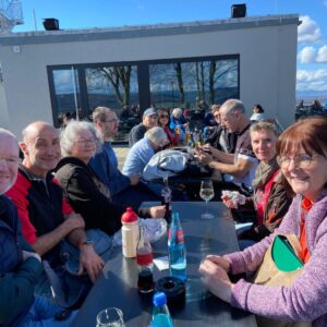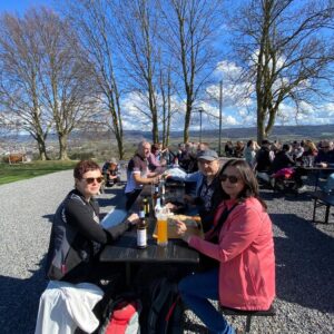 Das Ende der Stadtführung war im Prinzengarten. Zusammen sind wir weiter zum Heubergturm gewandert. Bei herrlichem Sonnenschein und warmen Temperaturen konnten wir im Freien Flammenkuchen und Wein genießen.